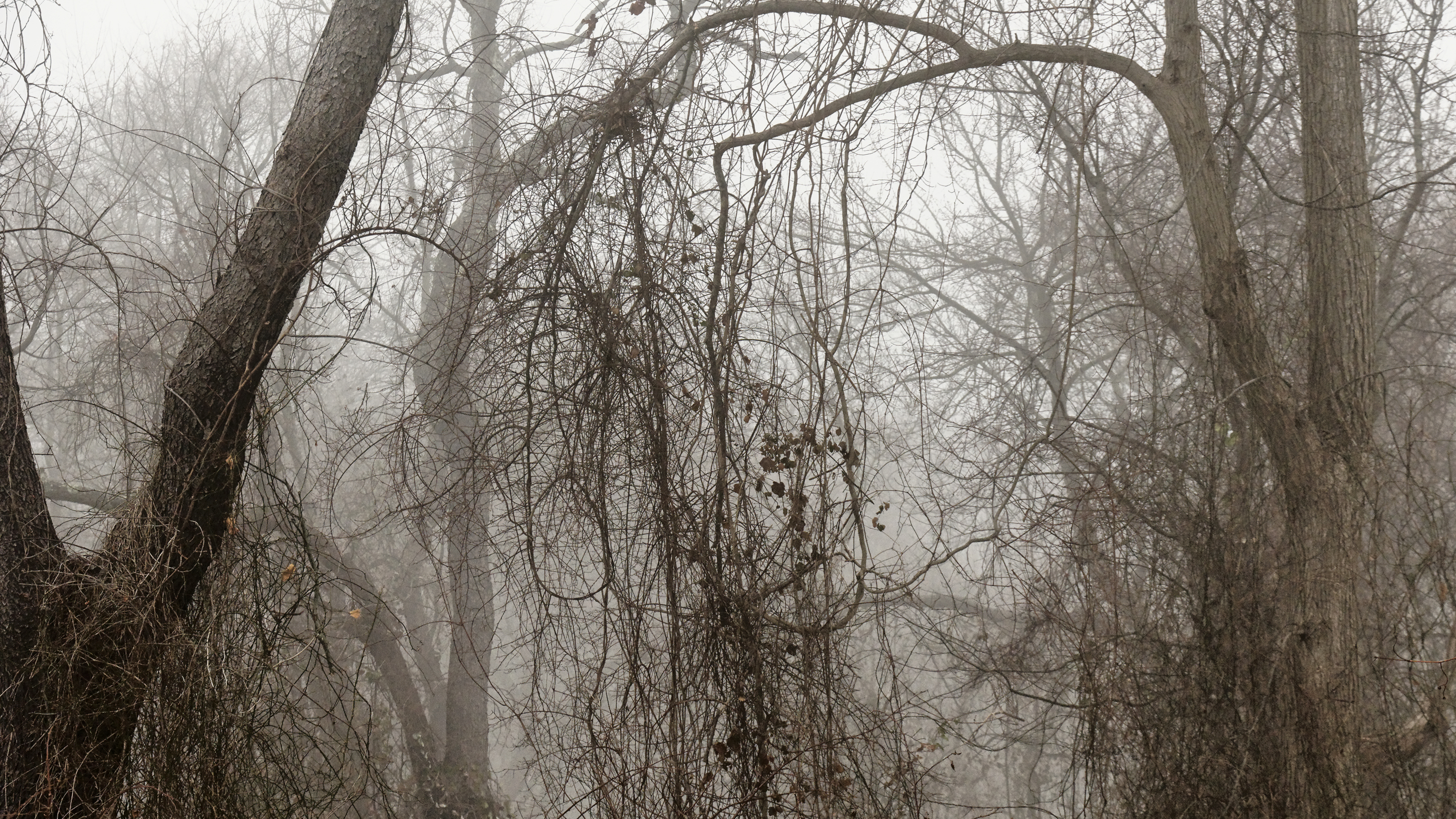 On the second day of the New Year, it dawned foggy. My wife questioned the sanity of going out to take pictures in the fog, which is a challenge of sorts. I’ve had the picture above on my computer desktop for a while and – while not vibrant and cheery – it is soothing. And soothing is a good thing for an administrator in the days before spring semester begins.