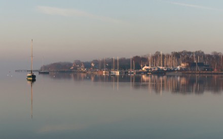Saturday morning, no breeze, just after sunrise. The first morning with boats on their moorings after five months. Things are getting serious. (The temperature at the time this image was taken, however, was 32 degrees.)